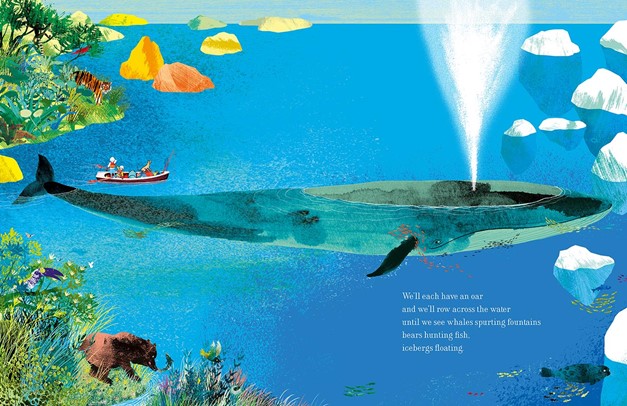By keeping my main characters small on most spreads, I was able to play around with the scale of the landscape and the many animals within it. I had always in mind, the little fingers that would point out the details.