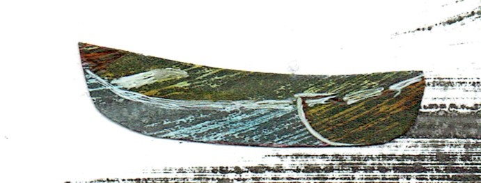 My technique was inspired by paper collage. The original boat (below) was a paper collage. This contrast between white space, a clean, cut edge and rich texture was the look I wanted to maintain.