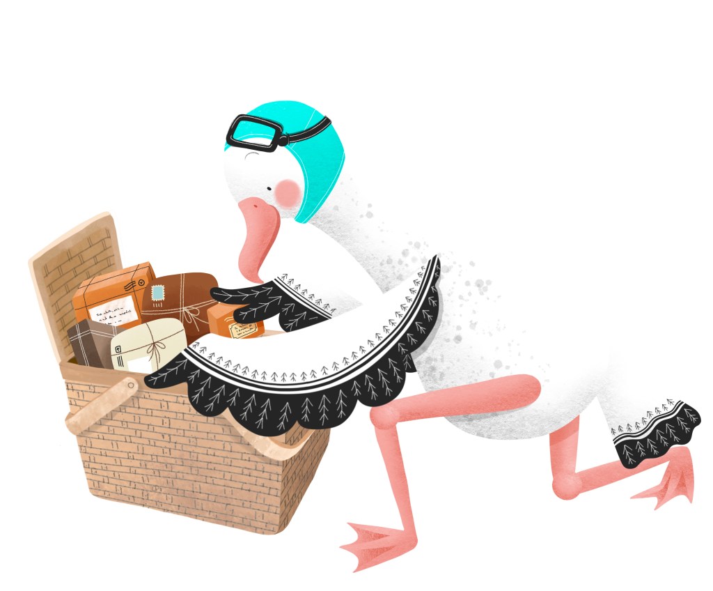 Finding a way for Plume to move around the world involved lots of logistical pondering. As penguins are such accomplished swimmers, I originally pictured him scooting through oceans and seas or boarding the Whale Express. But whales could quite possibly struggle to reach the Grand Canyon or the depths of the Congo or the tip of La Tour Eiffel, so I settled on the majestical albatross—large enough to carry Plume and all manner of goodies. And of course, Ava of the Albatross Express gives the flightless Plume wings—a literal and figurative boon for this plucky penguin.