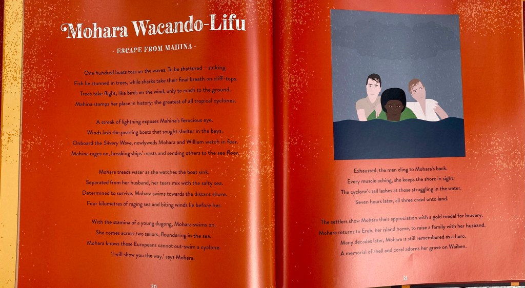 One hero from the book is Torres Strait Islander, Mohara Wacando-Lifu who was the first Indigenous woman to be awarded the Royal Humane Society’s Gold Medal for bravery.