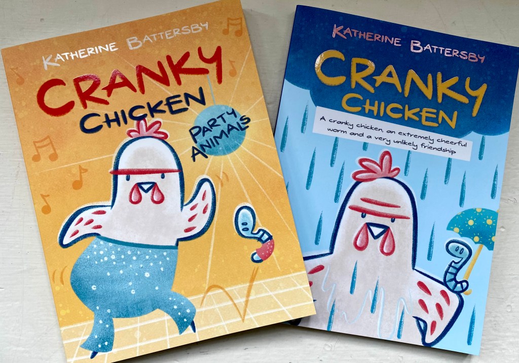 Congratulations Katherine on Cranky Chicken, your graphic novel for children being so successful that there is now a sequel, Cranky Chicken: Party Animals (published by Lothian Children’s Books/Hachette Australia).