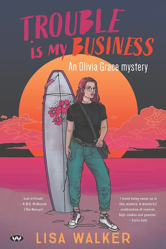 In ‘Trouble is My Business’ Olivia Grace is a recently retired teen PI. She’s got her priorities sorted and they don’t include solving cases. She needs to pass first-year law, look after her little sister, and persuade her parents to come back from a Nepali monastery and resume parenting.
