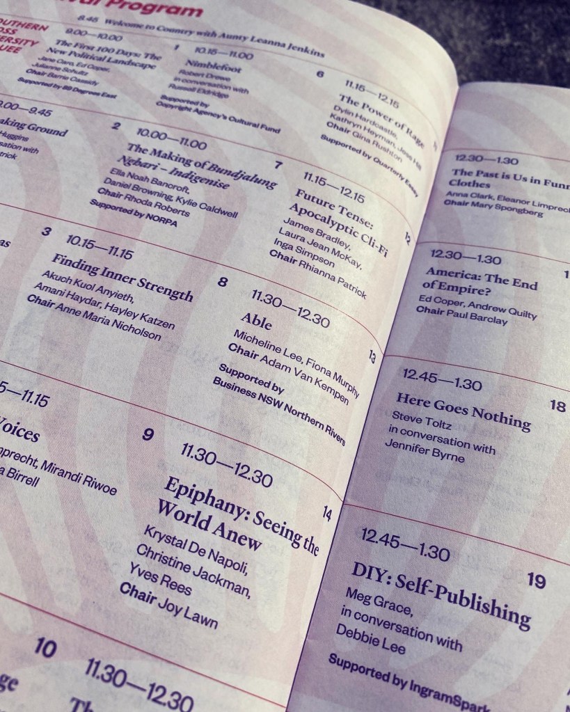 Thank you to Yves, Krystal and Christine, as well as Byron Writers Festival.