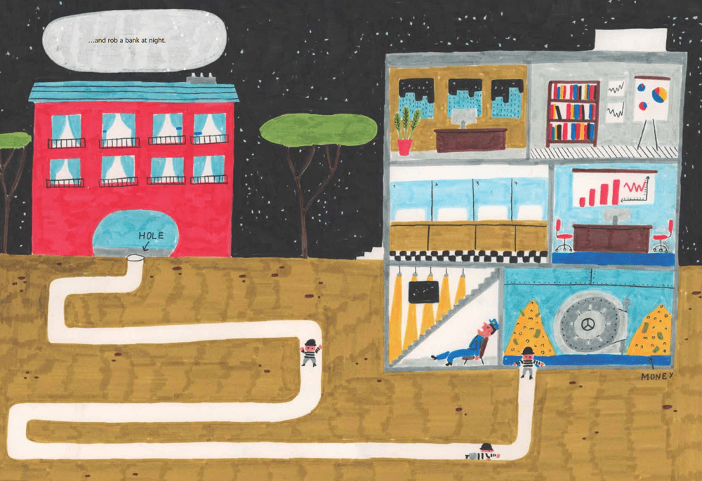 “The plan was very simple: Thief 1, Thief 2 and Thief 3 would dig a tunnel … and rob a bank at night.” (The Robbery)