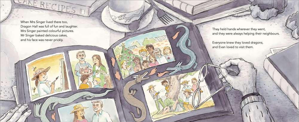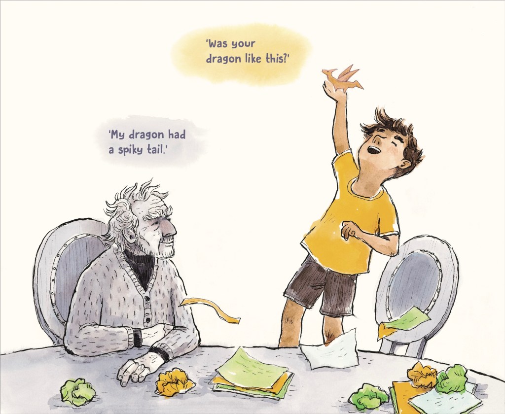 Dragon Folding, illustrated by Lucia Masciullo, is one of your standout picture books. It gently tells the tale of Mr Singer and his journey through grief, reconnection with community and slow mending.