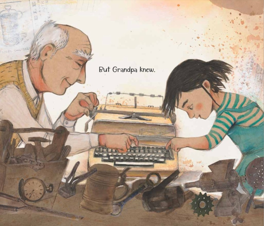 While Penny and her grandfather working together are wonderfully portrayed in this illustration below – the older and the younger, showing the beeutiful loving relationship – and the mutual respect of the two characters.