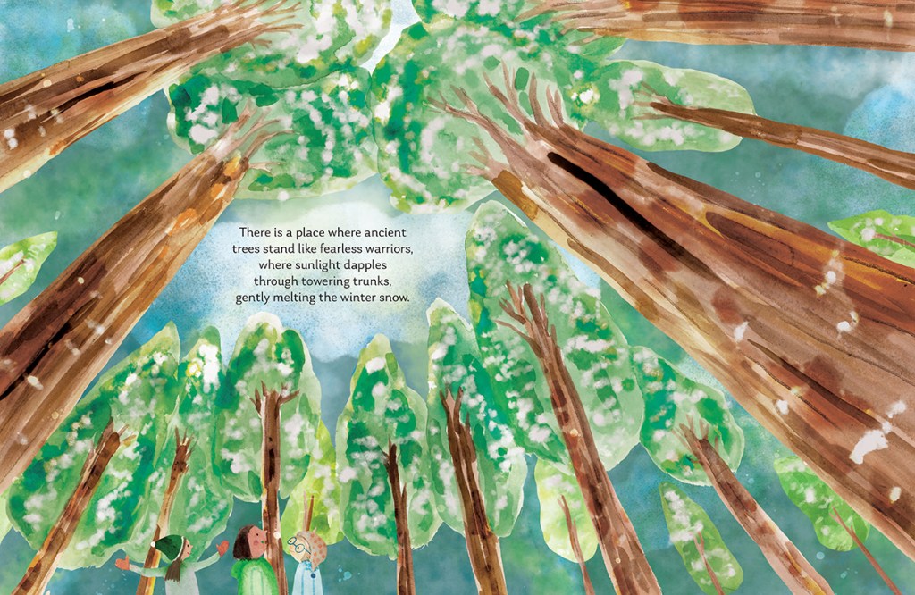 I also love the perspective used in the Sequoia National Park illustration, showing the children looking up at the giant trees. I love the look of wonder on their faces!