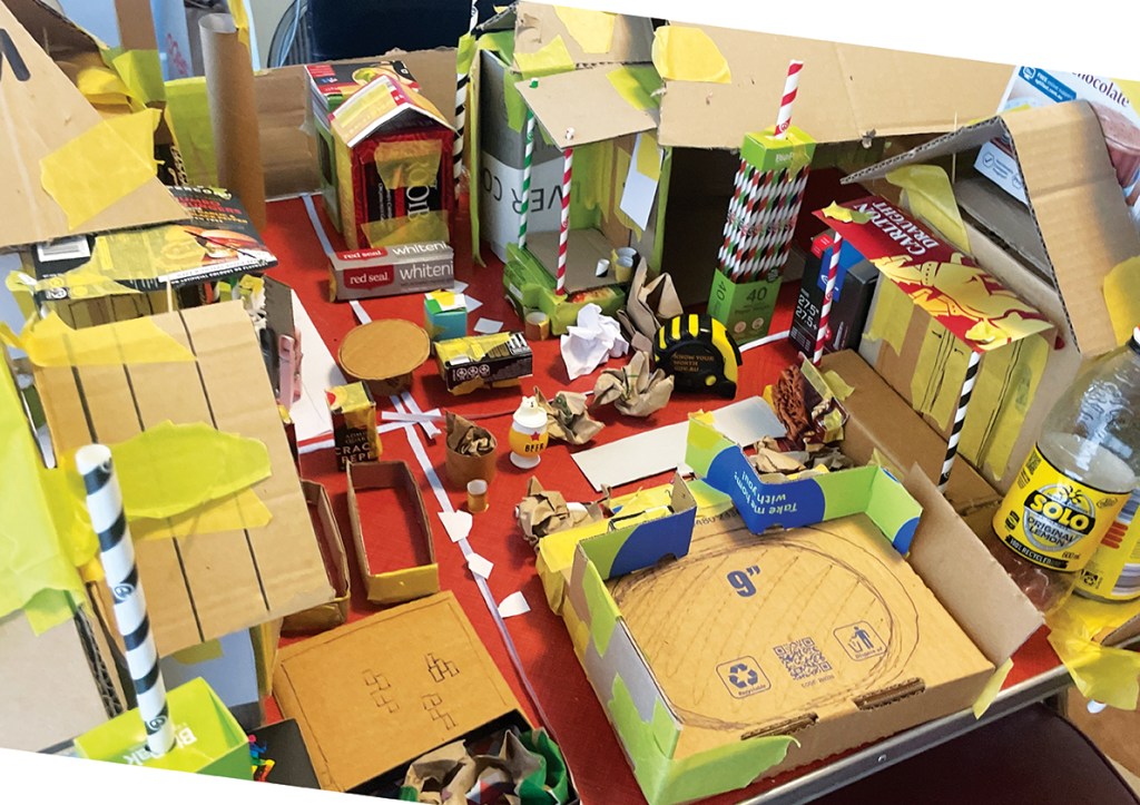 I decided on the size and style of each house. I built a model out of cardboard and recycled boxes to help with continuity, scale and perspective. I had the help of my talented partner who is a set builder to make the houses. The roofs on Australian houses are deceptively complex! I added furniture, pot plants, a chicken coop, a pool, sheds and of course – removable fences. This felt like something between playing with dollhouses and being an architect.