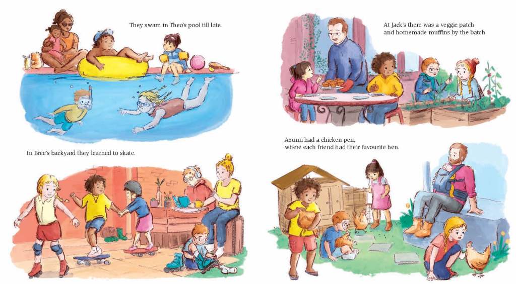 The Big Backyard Plan is a story about four friends – Azumi, Theo, Bree and Jack who live side-by-side and back-to-back.