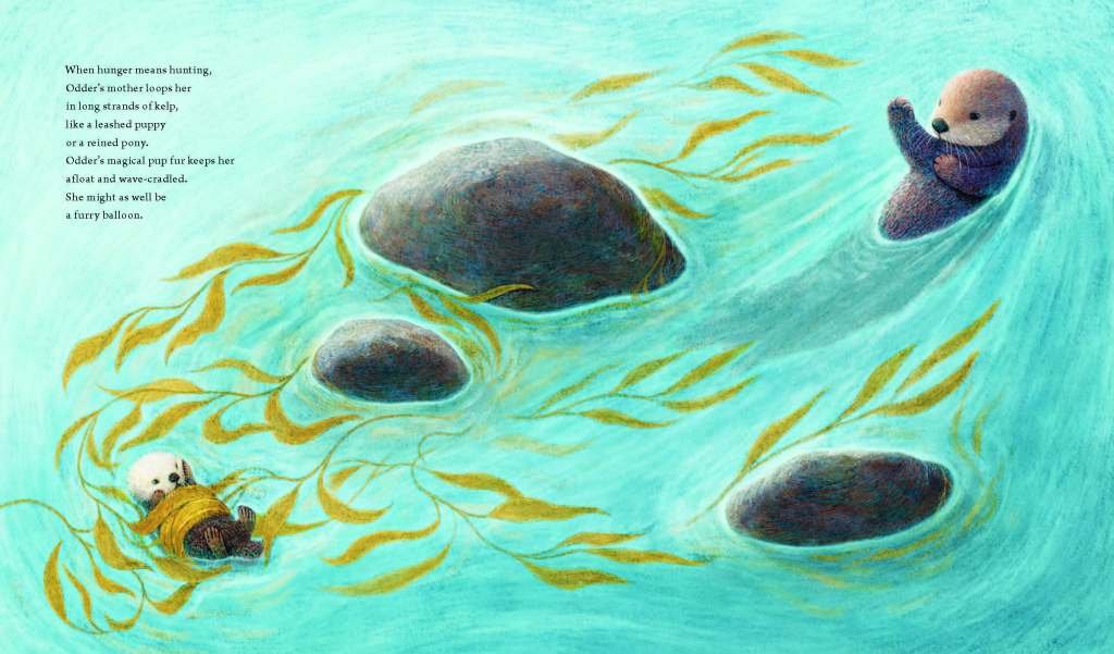 Katherine: Watch sea otters in the water, and you’ll know that play defines their days. The way they move is lovely and lyrical and full of delight, and nobody captures that essential joy better than Charles. His illustrations are not just beautiful. They positively leap off the page!