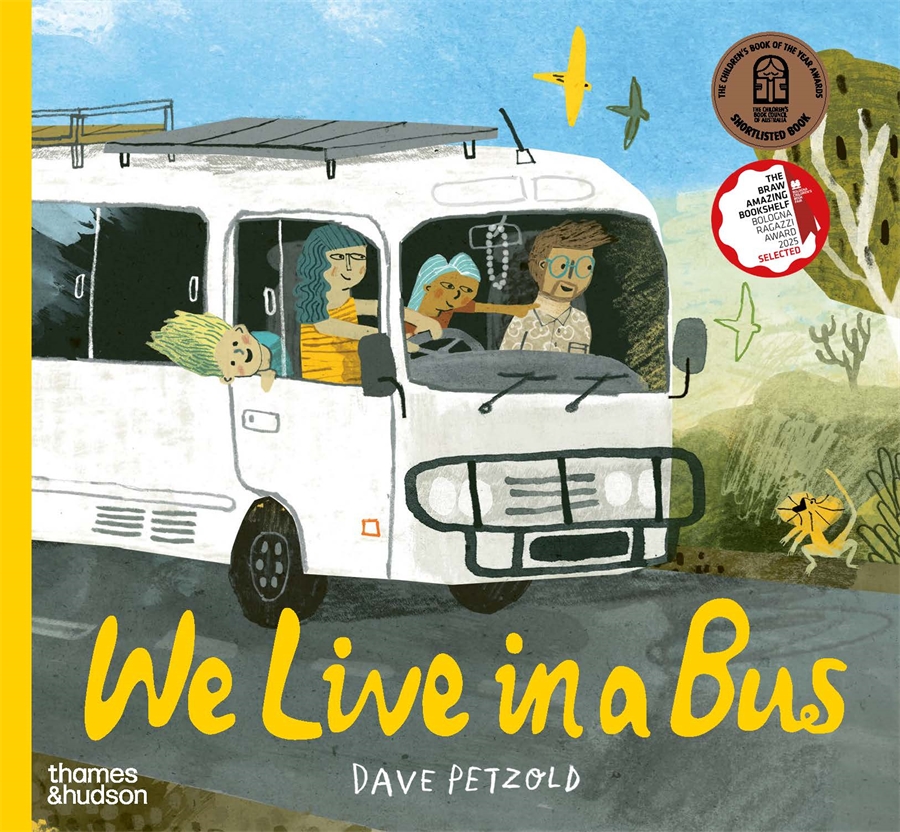 We Live in a Bus by Dave Petzold is a 2025 CBCA shortlisted Picture Book of the Year.