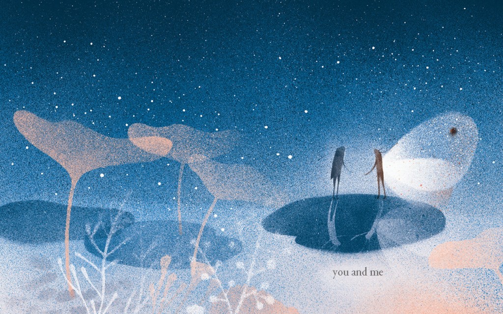 I think of picture books as an art form and hoped for the reader to experience ‘Between’ as a ‘feeling’, rather than following an intricate narrative. For better or worse, I’m not sure ‘Between’ has a genre. As a story it’s a simple idea of two characters meeting and the world being a better place because of their friendship but with exploring this in with so few words, the pages step into a space that is hard to define with the subtle nature of the imagery.