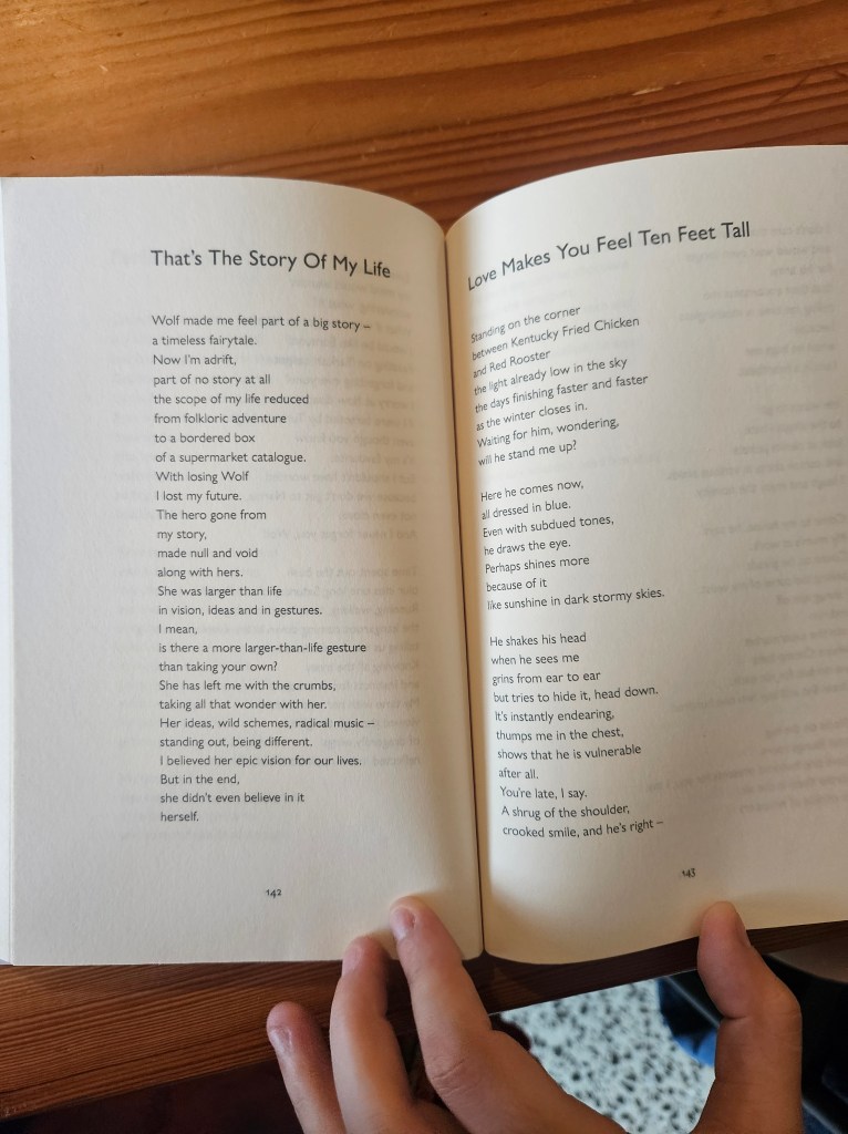 Almost each chapter/poem title is a song title. Like classic novels in childhood, music that is shared fortifies friendships. It’s a code for who to connect with and how. Especially as teenagers when we discover pop culture. This works for Red and Wolf and then for Music Girl and Red. Music Girl’s ability and knowledge of the piano is something Red longs for and I describe it as ‘an aural rope thrown from the window, for escape or rescue’ as a hint that it is through music that Red might find a way through her grief. Discovering Bach is another new thing for Red and the complexity and concentration it requires ‘presses pause’ on her tumult. Again, the power of music to heal her…if she lets it.