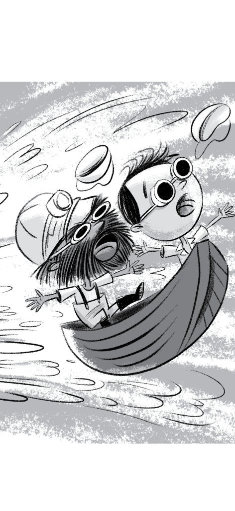 When I wrote Tim, I had a sense of who the characters were, but no real idea of what they looked like. Christopher’s illustrations changed all that. He drew the characters to perfection. My very favourite illustration is of Mr Wilbanks and Tim being propelled from the sewer in the boat. It was one of the first illustrations I saw, and I knew immediately that was exactly how Tim and Mr Wilbanks should look.